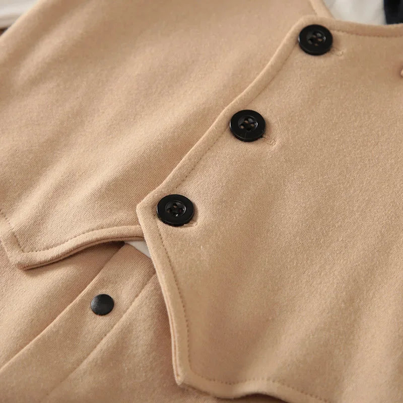 Apresentamos o Macacão Formal Infantil de Algodão, uma peça essencial para ocasiões especiais, unindo estilo e conforto para os pequenos. Este macacão é ideal para a primavera e outono, proporcionando um visual sofisticado e encantador.